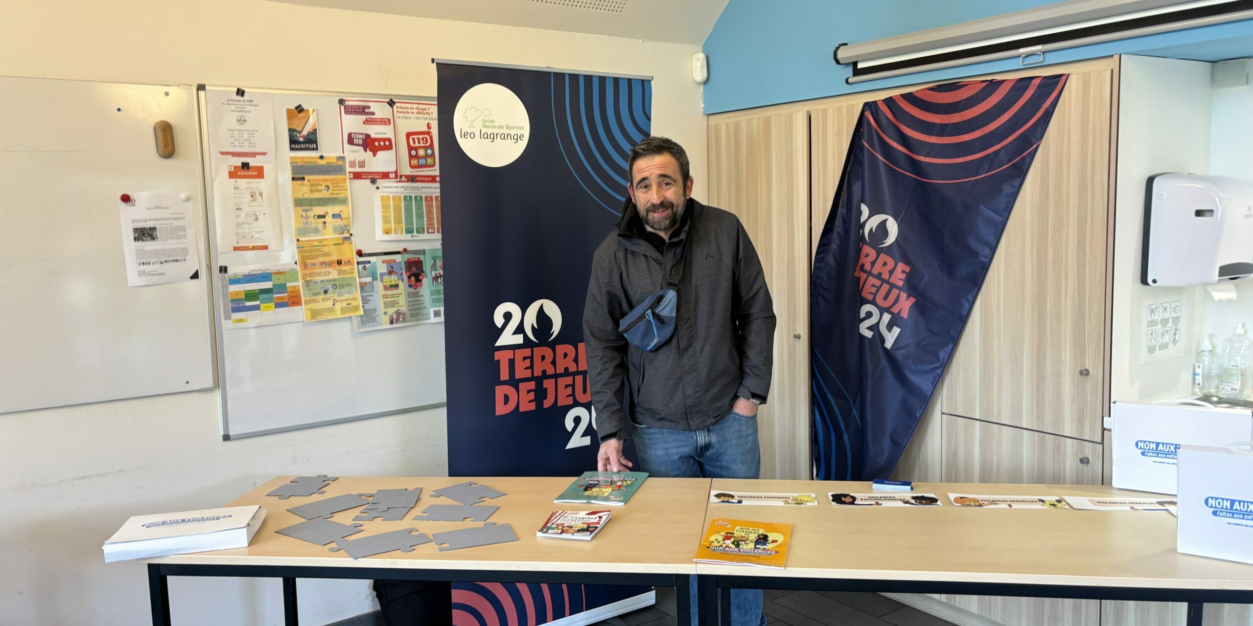 Sur notre stand, nous avions la mallette des Petits Citoyens, un outil pédagogique créé par la Fédération Léo Lagrange et Union nationale sportive Léo Lagrange pour sensibiliser les jeunes et les structures aux violences verbales et sexuelles dans le sport.